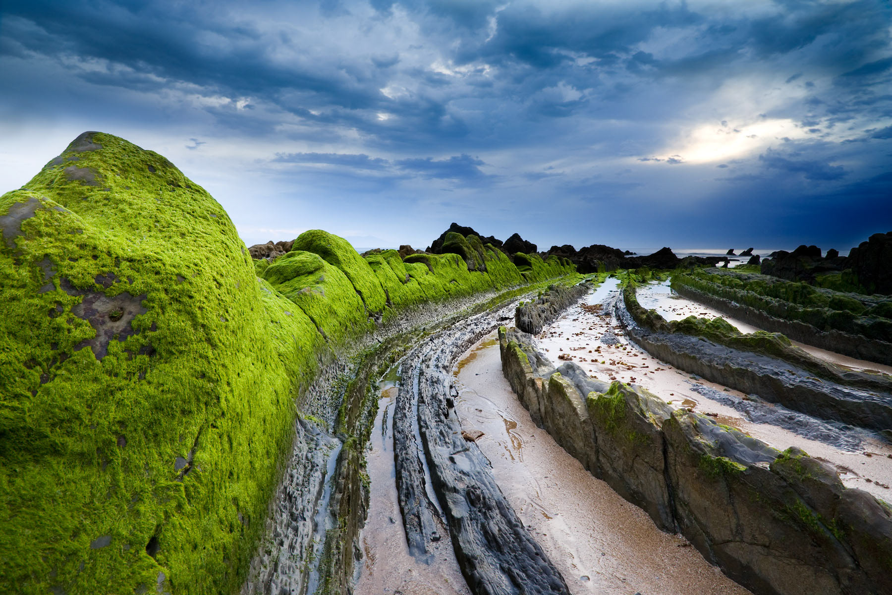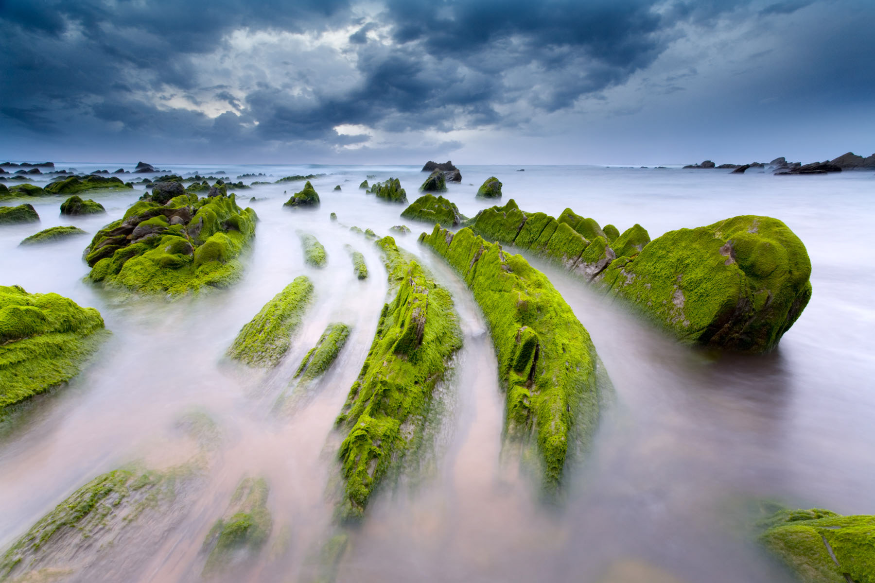 Green Velvet observa el paisaje costero como un cuerpo vivo, cubierto por una piel vegetal que suaviza y a la vez transforma la dureza de la roca. El musgo actúa como un velo que envuelve el territorio, alterando su percepción y desplazándolo hacia un espacio casi táctil, donde lo mineral parece volverse blando, vulnerable.